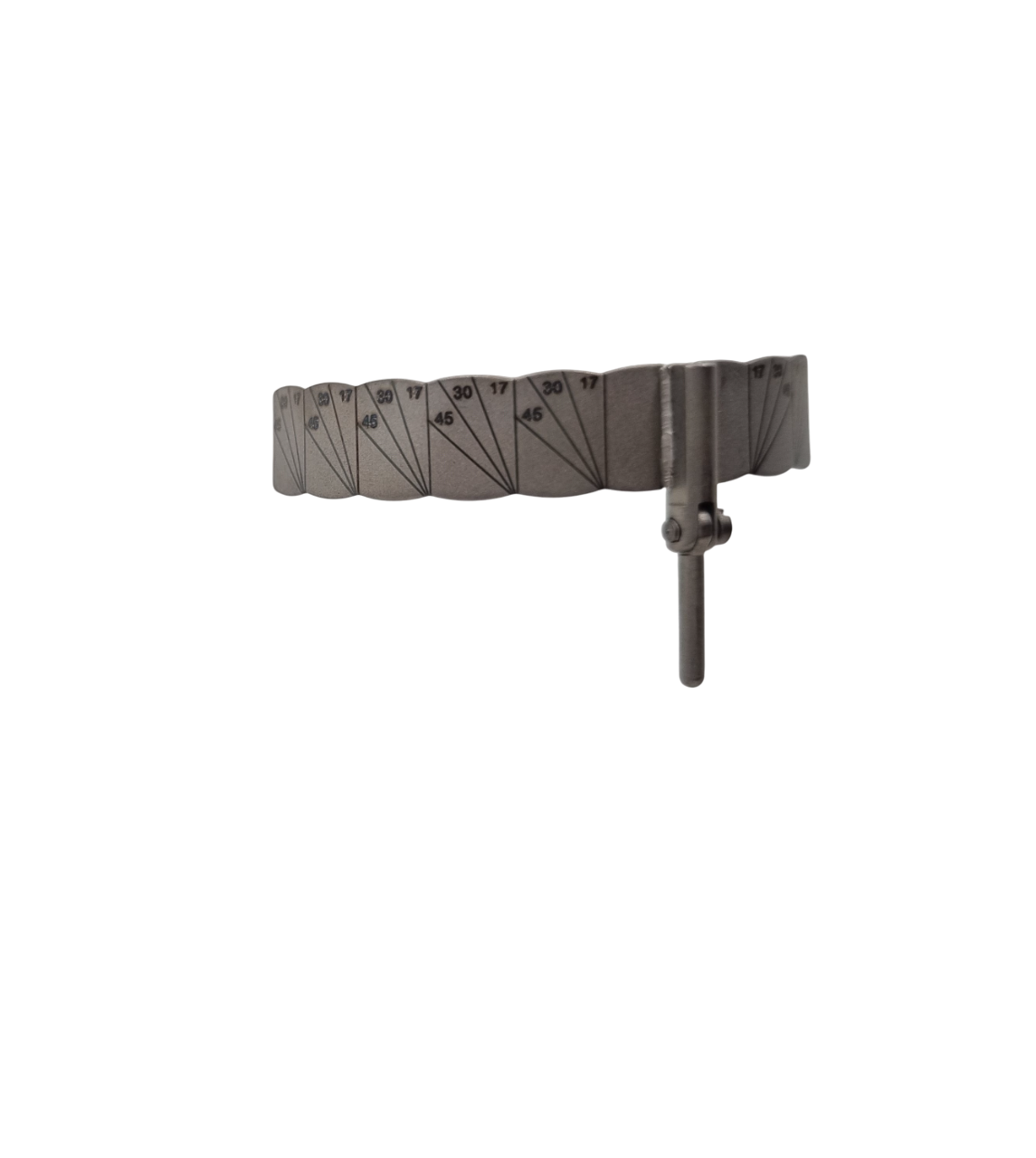 We have given Straight line at 7mm distance from each other (Indicating the axis of all the Tooth). From Molar region with have put different degrees viz. 17º, 30º, 45º as per the degrees of abutments available in market.