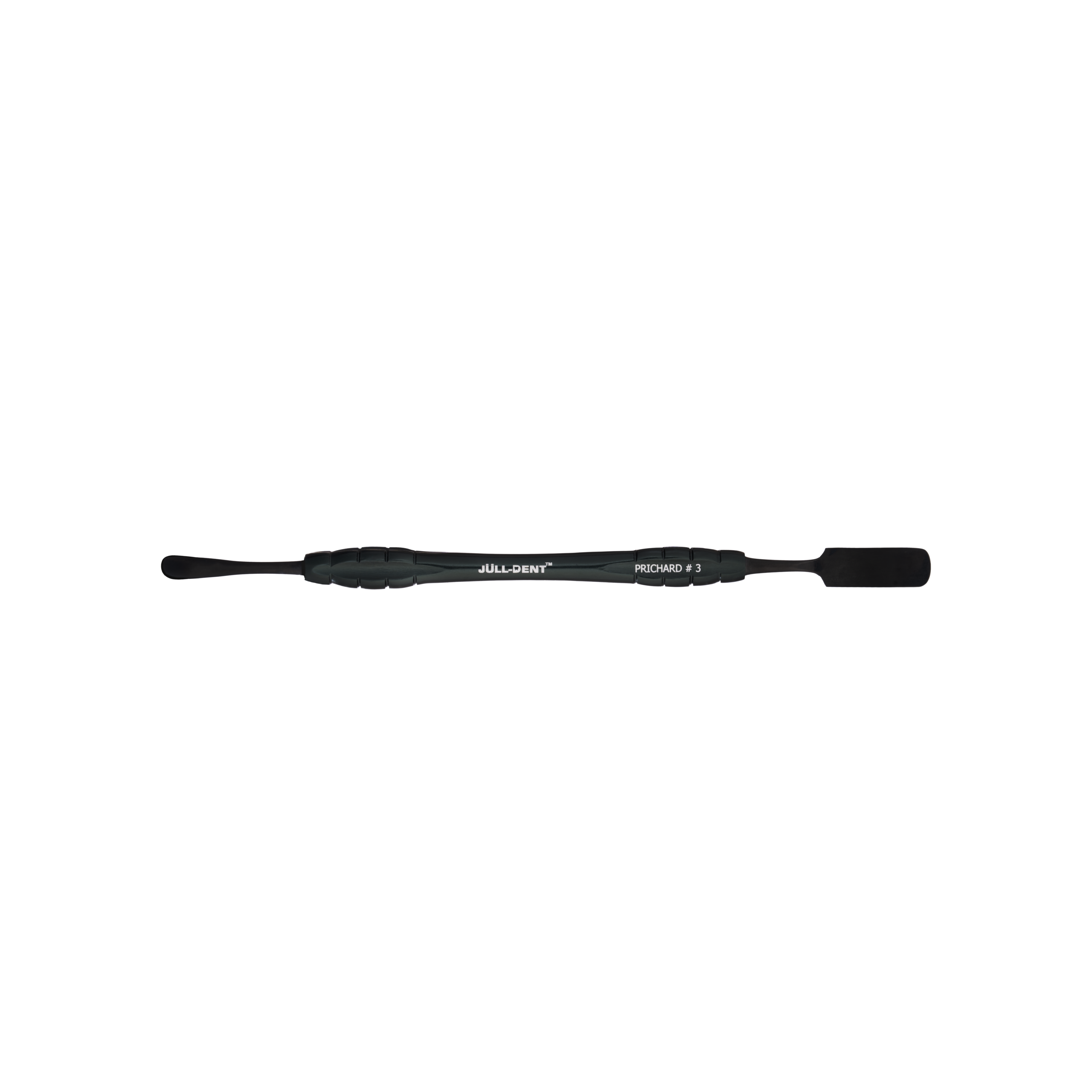 Jull-Dent 32E- Prichard #3: Combines a large, flat blade used for retraction and a smaller curved tip used for reflection and retraction of tissue. Ideal tool for Flat reflection. Also used to carry PRF Membrane from one place to another.