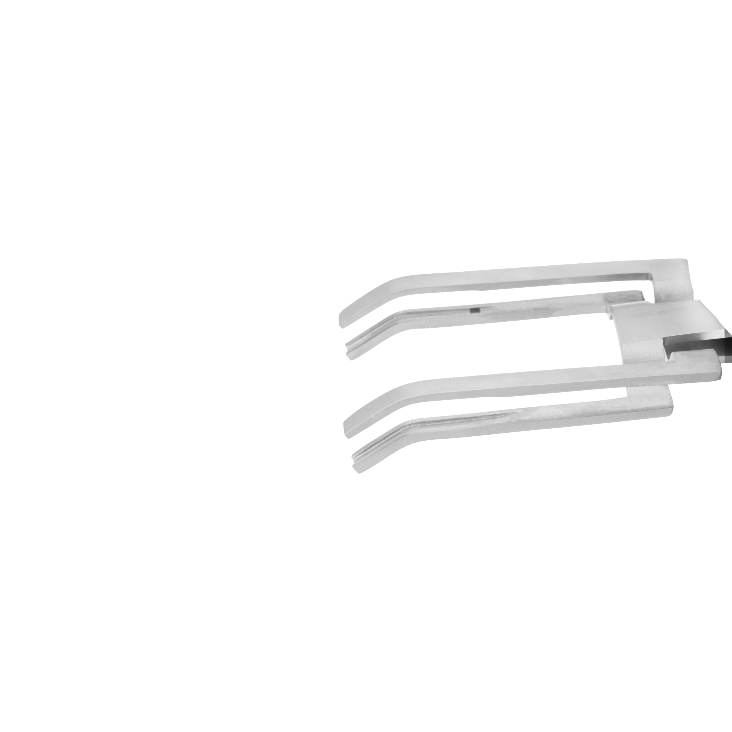 - Tweezers-like design with two conjoined blade with serrated tips at the working end