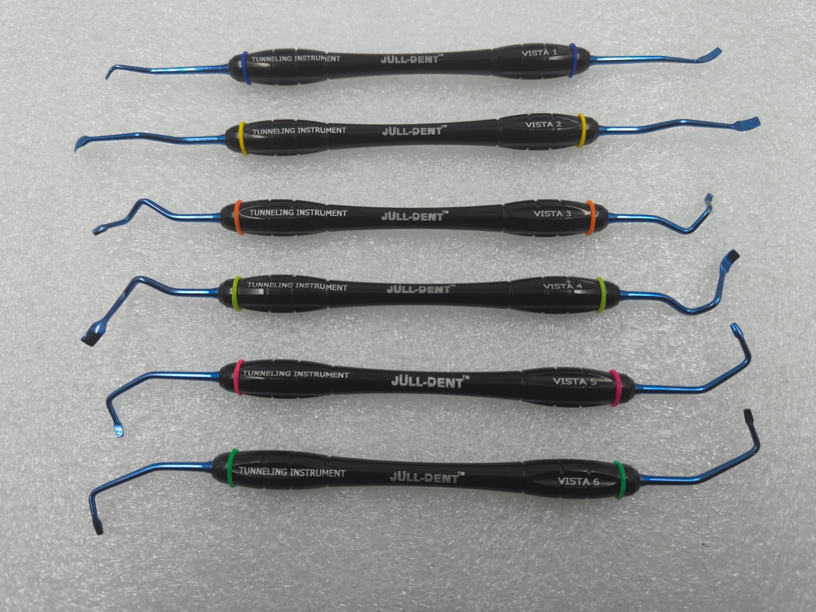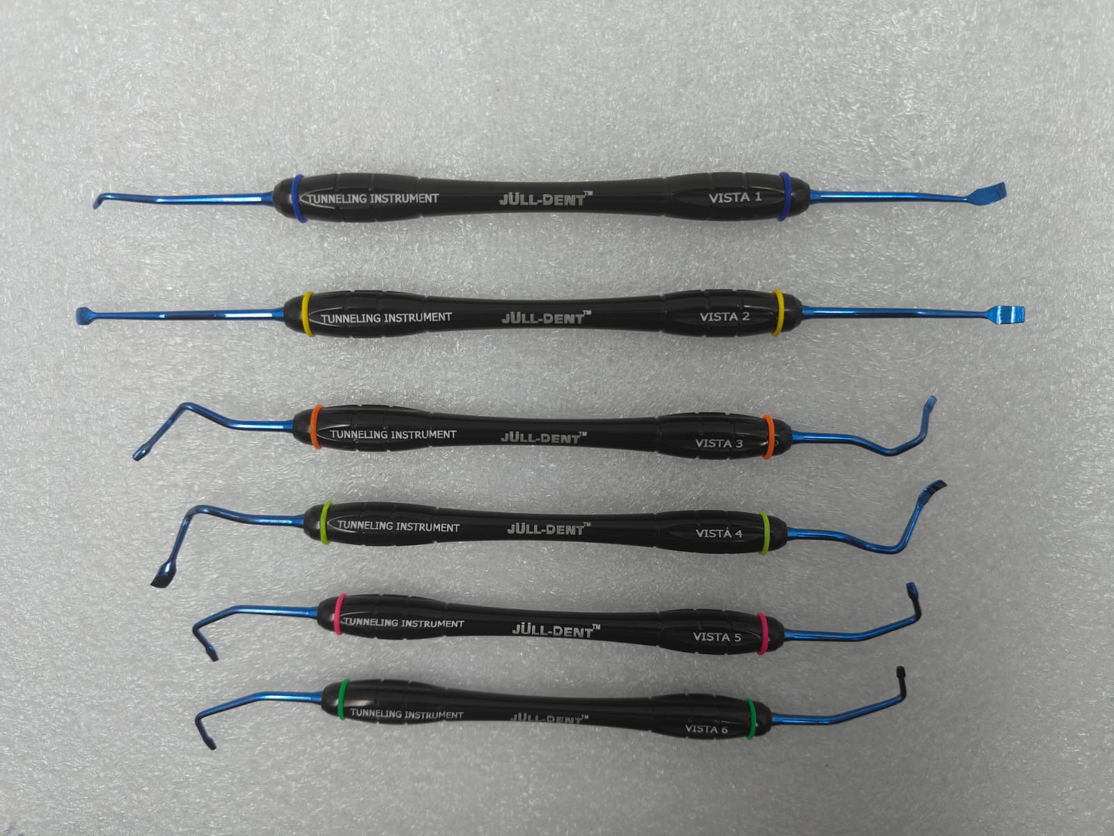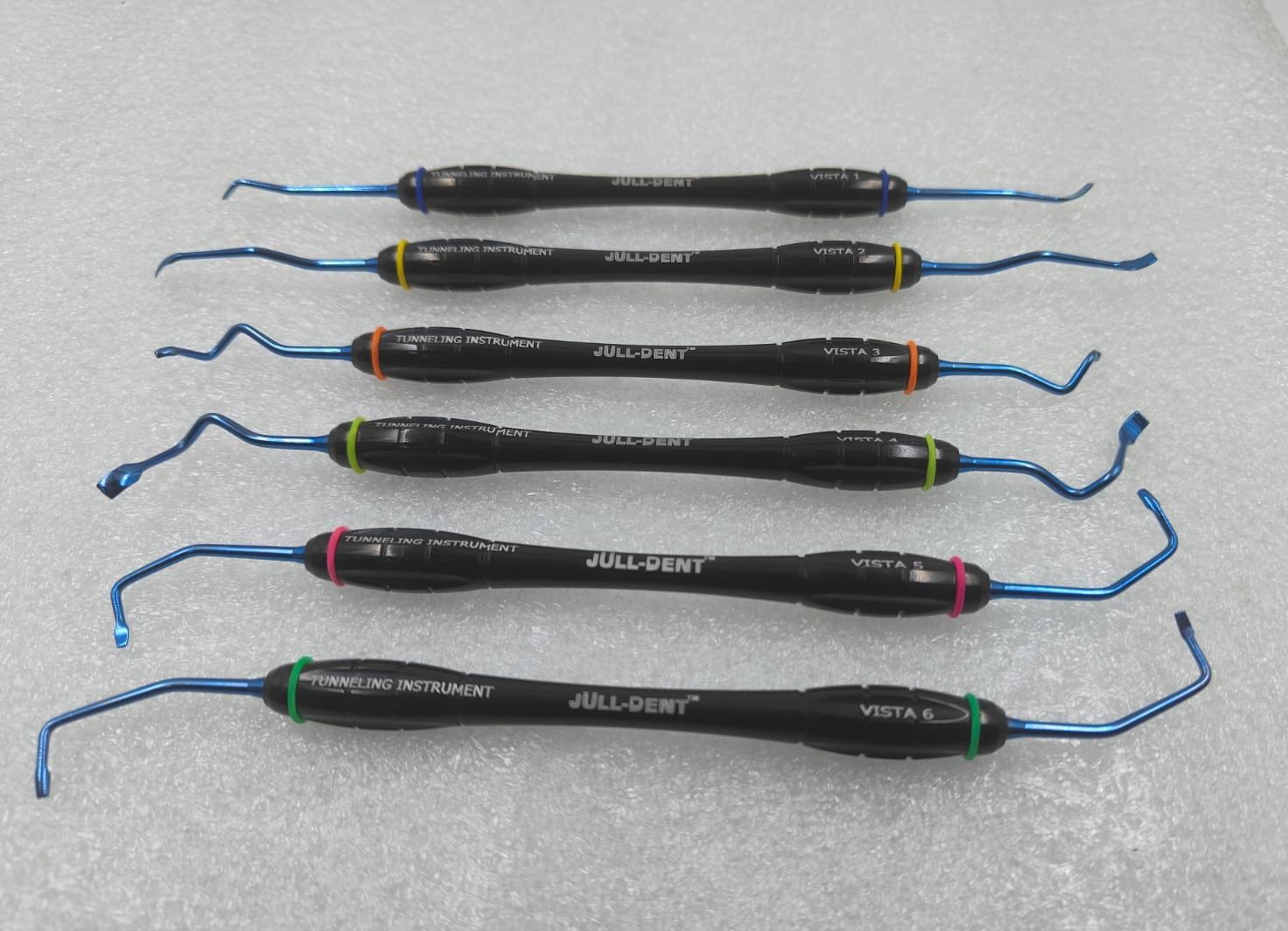 - A set of 6 elevators are designed to create a subperiosteal tunnel beneath mucosa, using a vestibular access.