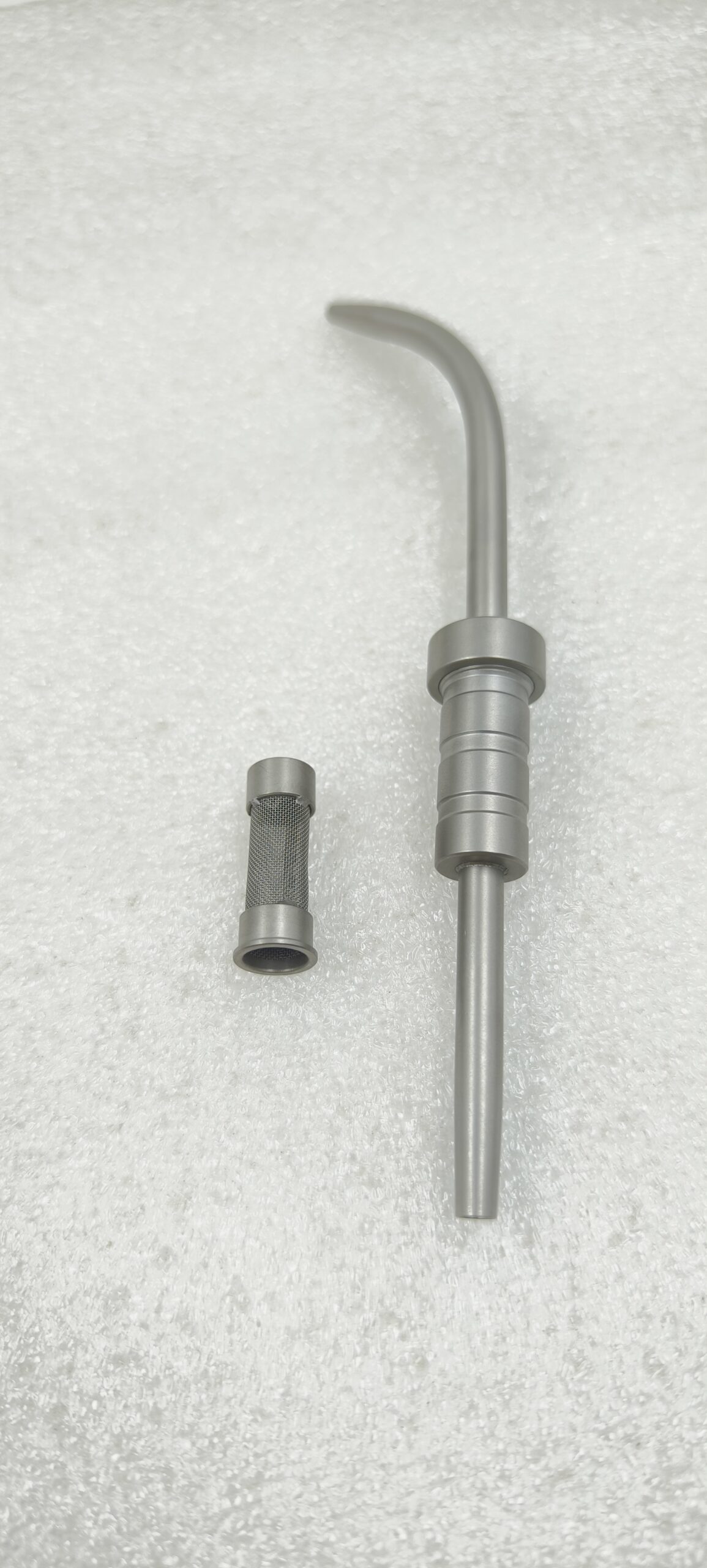 The “bone collector” by Julldent (Jullundur Surgical Works) is a dental instrument, specifically a suction-based device used during dental implant surgeries to efficiently harvest the patient’s own (autogenous) bone chips or bone particles generated during site preparation, collecting them in a filter for immediate reuse in bone grafting procedures. It’s a reusable tool designed for easy integration with standard dental suction units to minimize bone waste and maximize material for augmenting defects around implants.