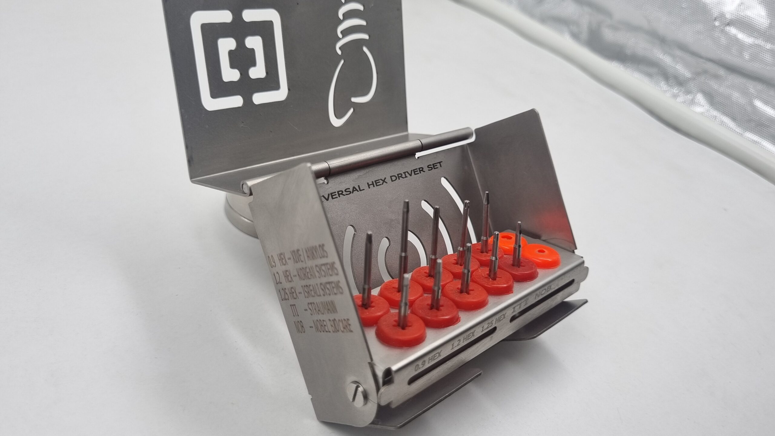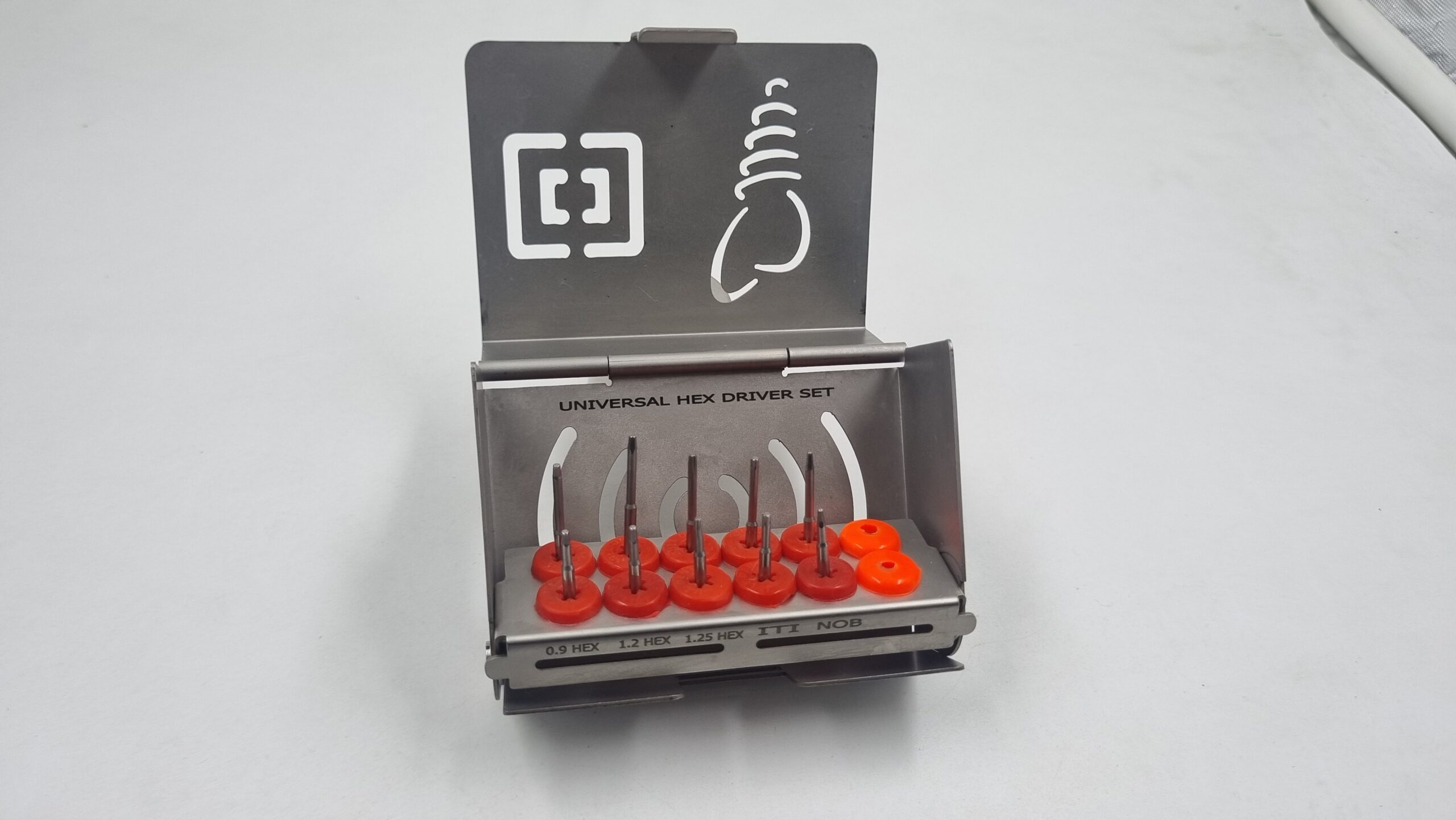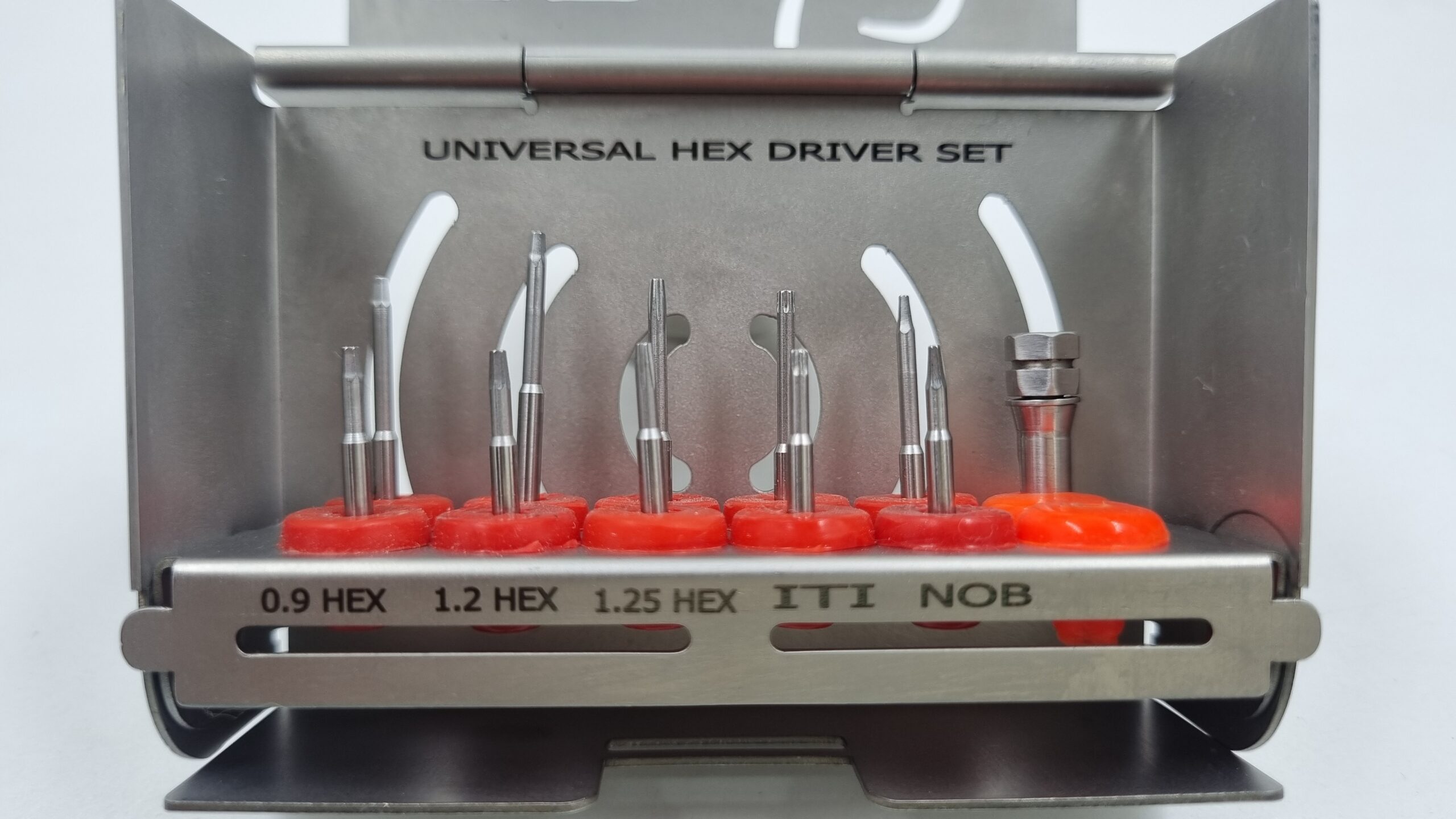 Universal Hex Driver kit is developed to facilitate a clinician to be ready with all companies Hex drivers at hand, to take care of any random patient walk-in with cover screw problems..