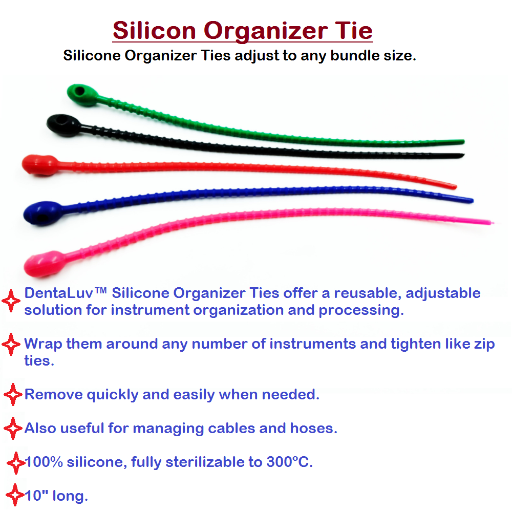 DentaLuv™ Silicone Organizer Ties offer a reusable, adjustable solution for instrument organization and processing.