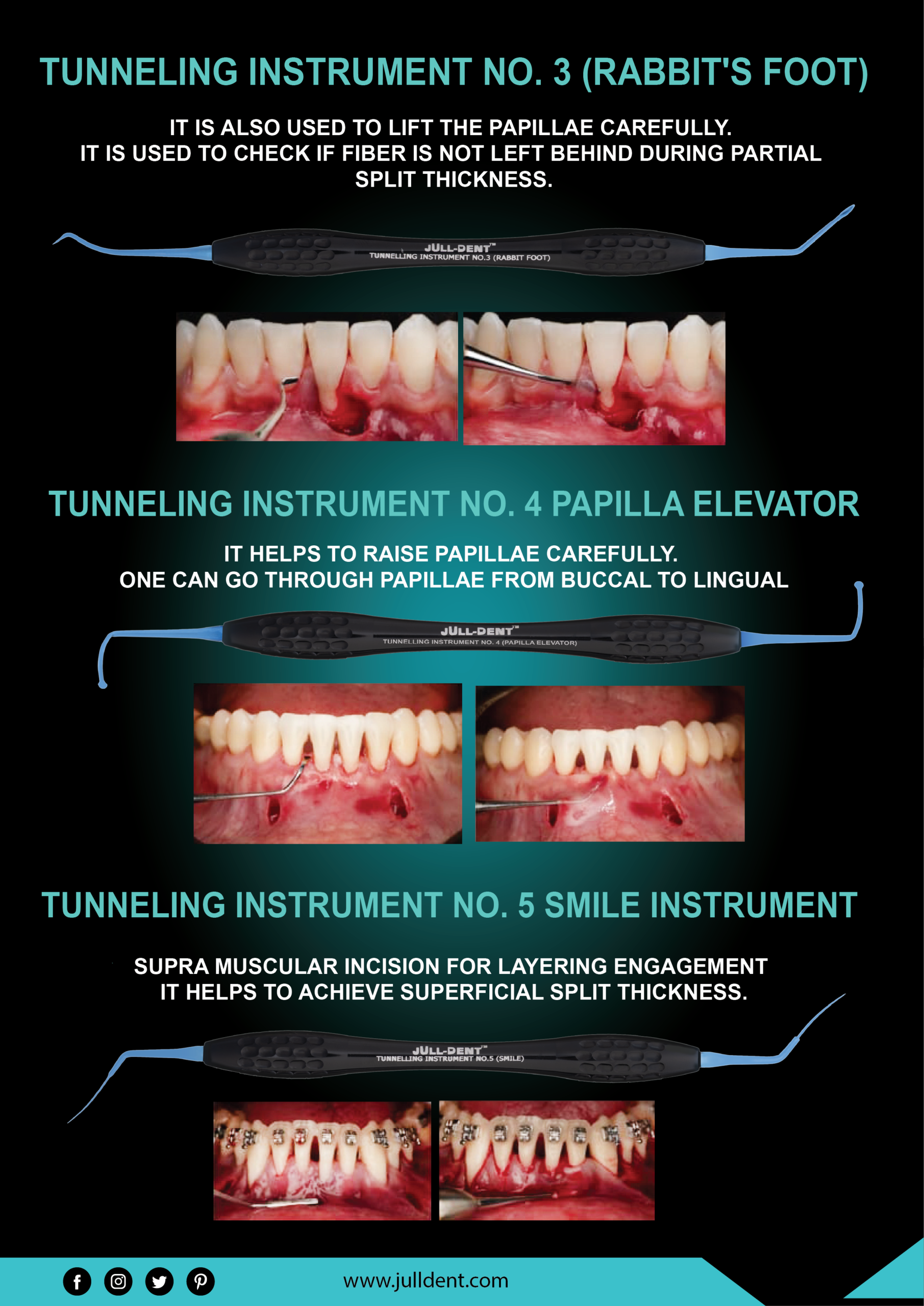 - The elevators allow efficient tunnel elevation in the vestibular region, under gingival margins and under interproximal tissues.