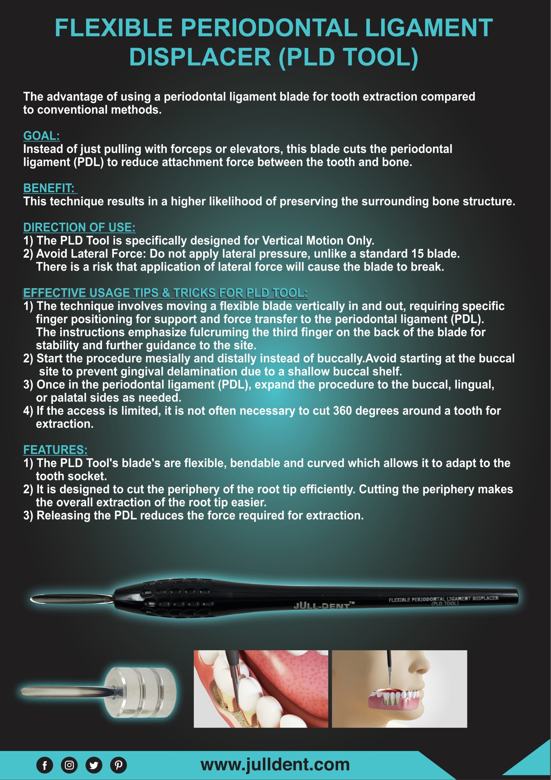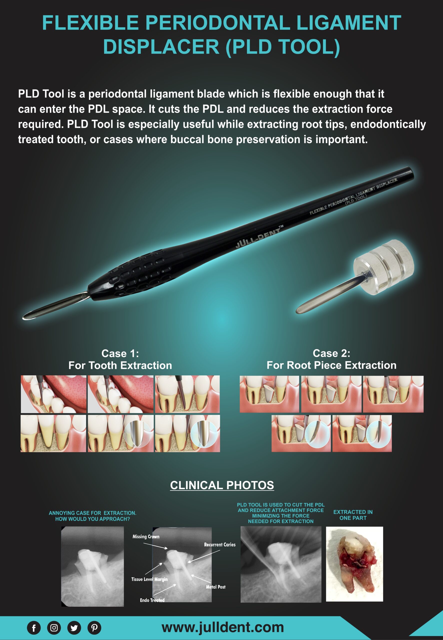 1) The PLD Tool’s blade’s are flexible, bendable and curved which allows it to adapt to the tooth socket.