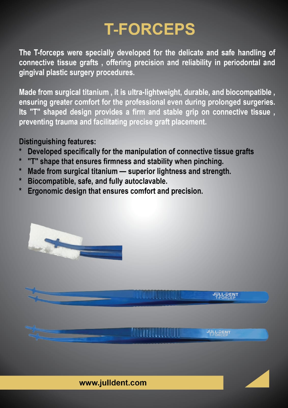 The T-forceps were specially developed for the delicate and safe handling of connective tissue grafts , offering precision and reliability in periodontal and gingival plastic surgery procedures.